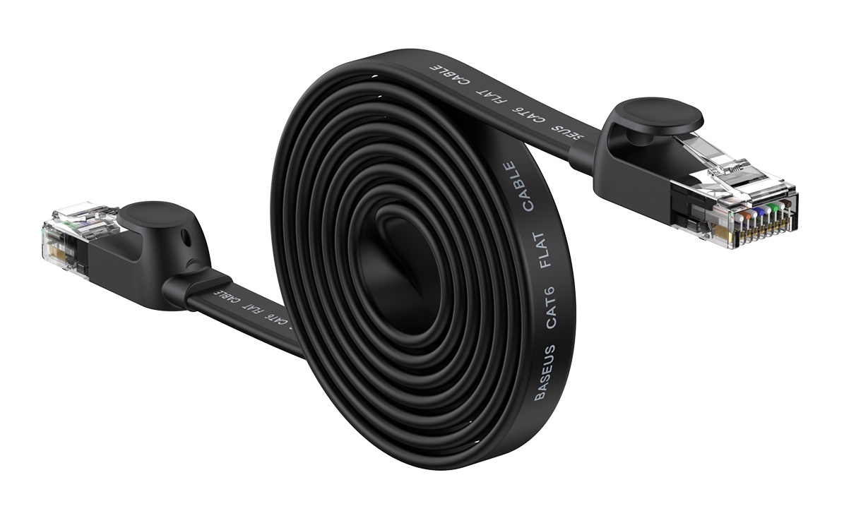 Płaski przewód Ethernet RJ45 Cat 6 UTP. Przeznaczony do podłączania urządzeń z dostępnym interfejsem sieciowym (komputerów PC, laptopów, sprzętu RTV) do Internetu / lokalnych sieci komputerowych LAN.