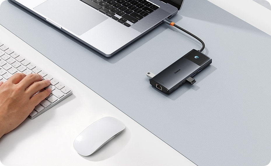 Zwiększ swoje możliwości dzięki adapterowi Metal Gleam Series II, który przekształci Twój komputer w centrum wydajności. Podłączany przez USB-C, oferuje aż 11 dodatkowych portów, w tym USB-C PD 100W, 2x HDMI, 4x USB-A, RJ45 (1000Mbps), czytniki kart SD/TF.