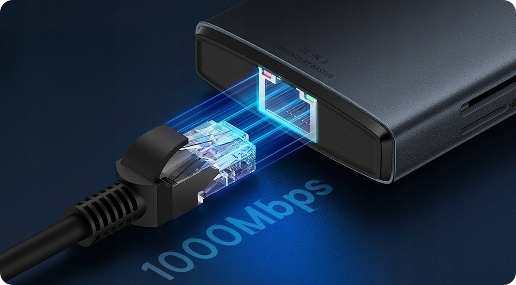 - Prędkość transferu danych: Port RJ45 obsługuje prędkość do 1000Mbps, co gwarantuje płynne i niezawodne połączenie internetowe, idealne do pracy zdalnej, gier online, oraz przesyłania dużych plików.