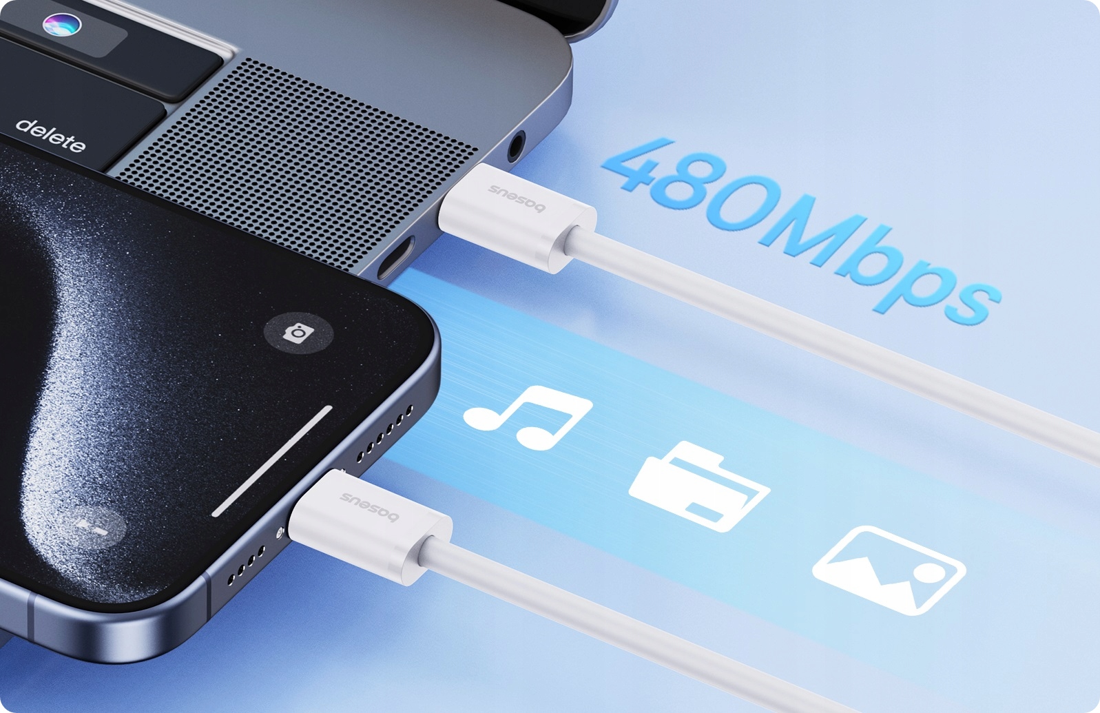 Wspiera szybkie ładowanie PD 30W i umożliwia szybki transfer danych z prędkością 1GB w 24 sekundy (480 Mb/s). Kabel zawiera pięć grubych przewodów z ekranowaniem przeciwzakłóceniowym, co zapewnia stabilność ładowania.