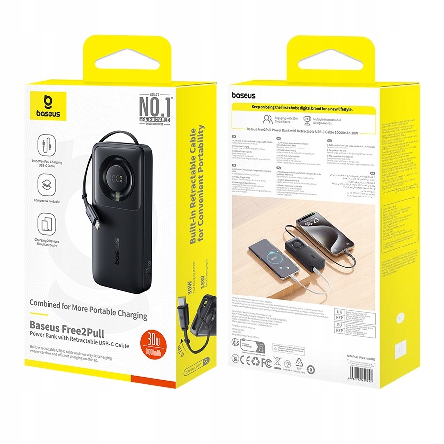 • Model: Free2Pull Power Bank with Retractable Cable 10000mAh 30W Cosmic Black