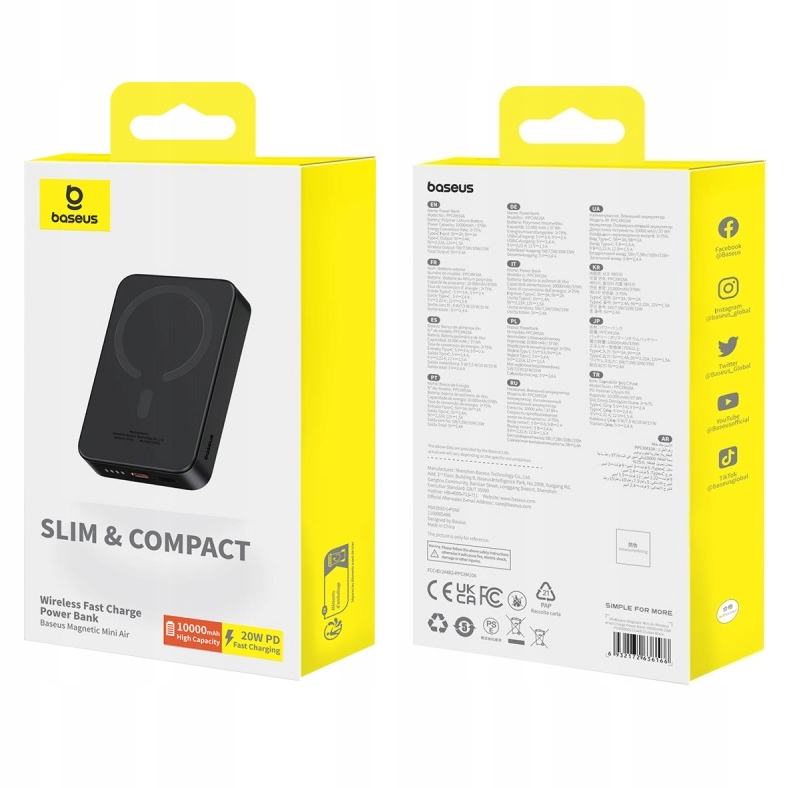 Baseus Magnetic Mini to power bank, który został stworzony z myślą o mobilności i codziennym komforcie. Dzięki wymiarom 10,4 × 6,98 × 1,8 cm i wadze ok. 209 g jest niezwykle poręczny i nie zajmuje wiele miejsca – bez problemu zmieści się w kieszeni czy małej torebce.