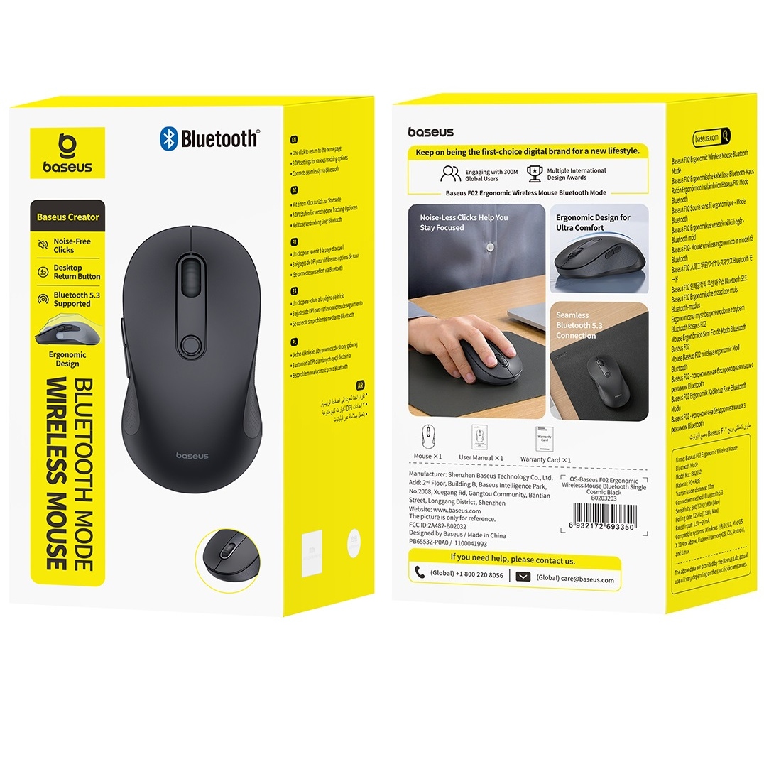 Baseus F02 Ergonomikczna Myszka Bezprzewodowa Bluetooth Single Cosmic Black