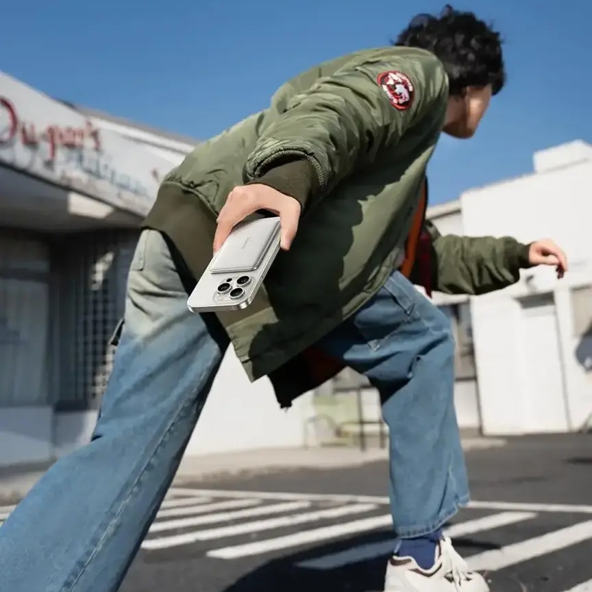 Obudowa z aluminium premium i miękkiego silikonu gwarantuje nie tylko elegancki wygląd, ale także trwałość i komfort użytkowania. Power bank obsługuje ładowanie przewodowe USB-C do 20W oraz bezprzewodowe do 15W, a wbudowany chip AI monitoruje temperaturę, zapewniając bezpieczną i wydajną pracę.
