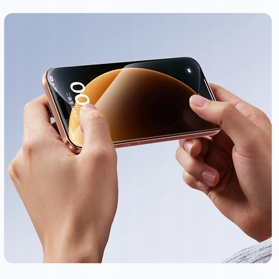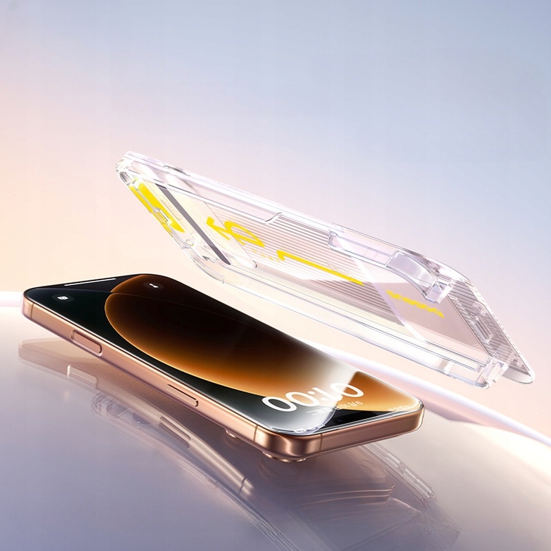 Dzięki tacce instalacyjnej Dustproof Tray montaż szkła jest prosty i bezbąbelkowy – wystarczy nałożyć, przeciągnąć i docisnąć. Szkło zostało wycięte z dokładnością 1:1, co gwarantuje idealne dopasowanie do ekranu i pełne pokrycie bez odstających krawędzi.