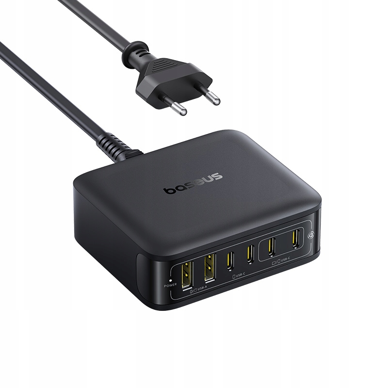 - 6 portów w jednym urządzeniu – 4 × USB-C i 2 × USB-A umożliwiają jednoczesne ładowanie wielu sprzętów